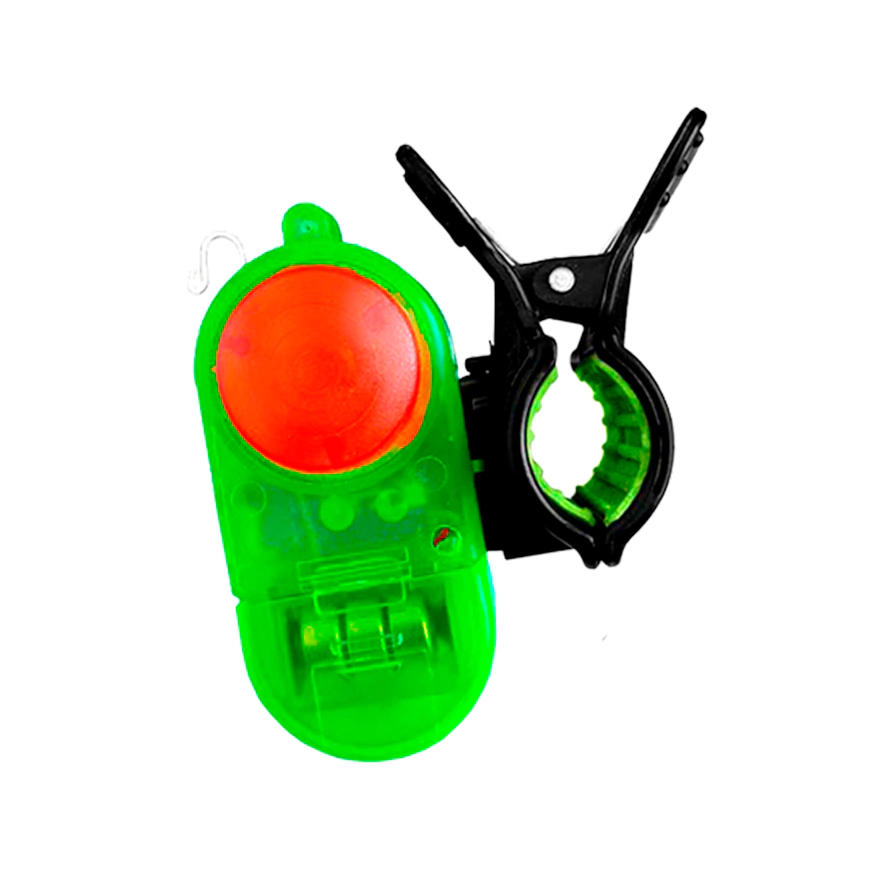 Dispositivo de alerta sonoro e luminoso, portátil e fácil de instalar. Seu volume é de 80 dB e corpo em ABS com prendedor emborrachado de fácil instalação. Um acessório que avisa a puxada do peixe.