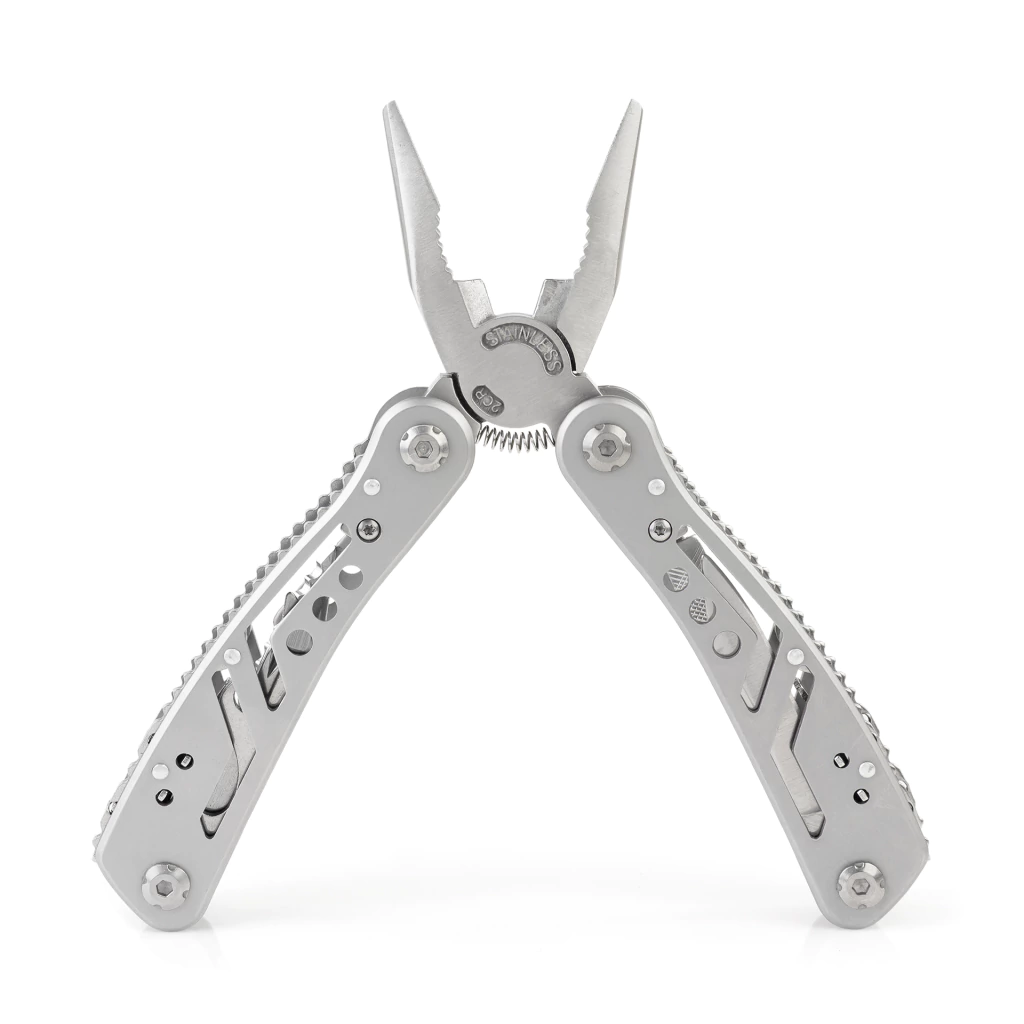 O Alicate Multifuncional QZ-YW02 é a ferramenta ideal para pescadores e aventureiros que buscam praticidade e eficiência. Fabricado em aço inox de alta qualidade, é resistente à corrosão, perfeito para ambientes úmidos ou com exposição à água salgada. Compacto e leve, oferece diversas funções, como alicate de bico, corte, chave de fenda, serra, lima e mais, tudo em um único item. Seu design com mola facilita o manuseio, tornando-o ágil e prático, e acompanha uma bainha para transporte seguro. Uma opção versátil e robusta para qualquer situação ao ar livre.