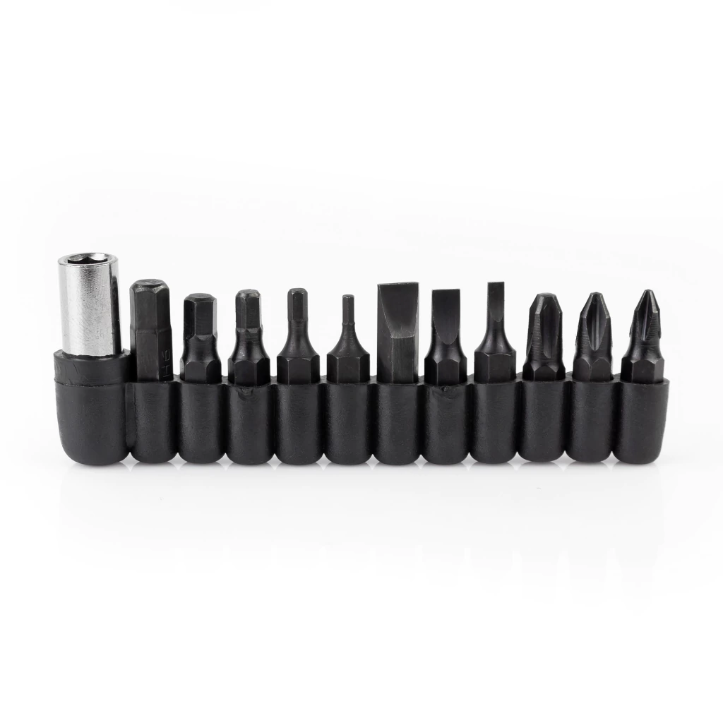 Funções: Lâminas | Chave de Fenda | Chave Cruzada | Lima com Régua | Abridor de Garradas | Suporte de Bits | 11 bits alternáveis