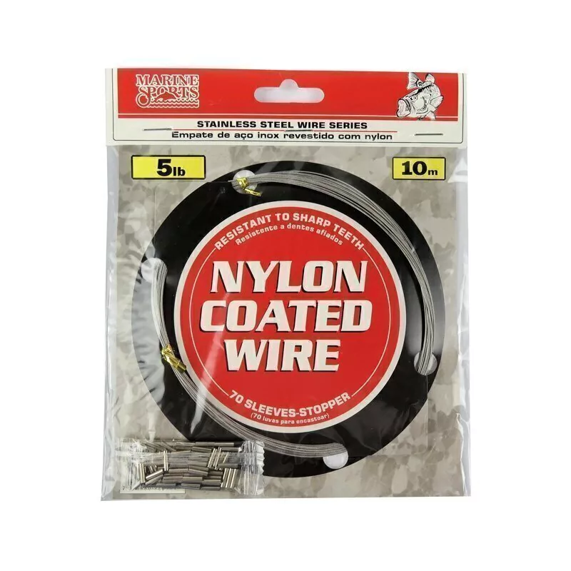 Cabo de aço trançado em aço inox de alta resistência, revestido com nylon.