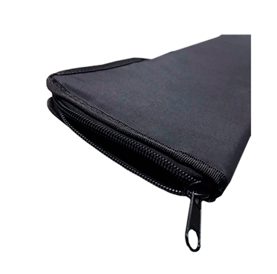 Capa em lona preta, com zipper reforçado e proteção interna para armas longas.