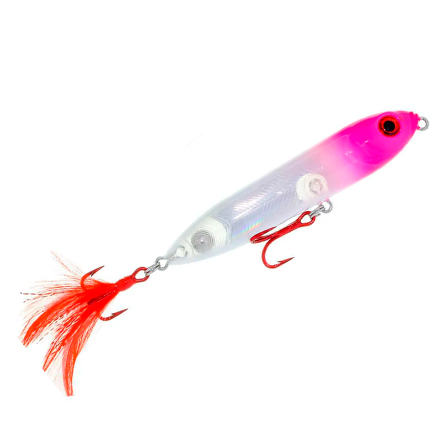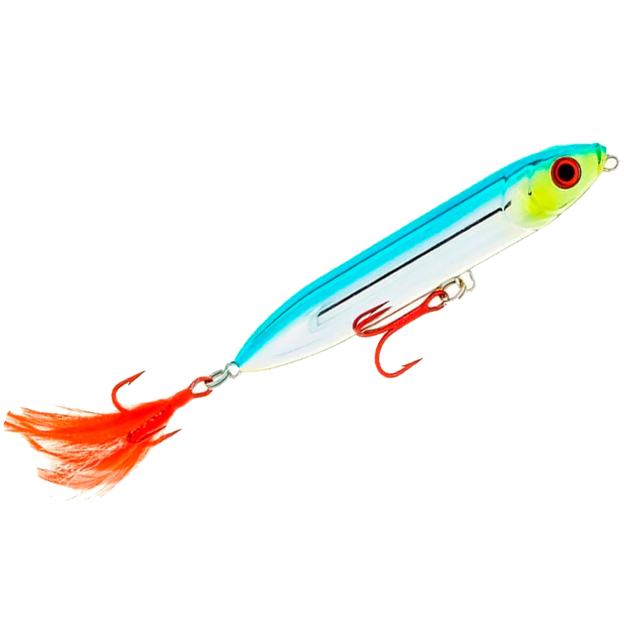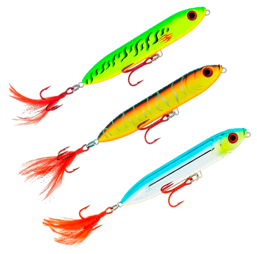 A isca Big Sara Jump agrada a todos pois a explosão na superfície é que nos deixa loucos pela pesca e com o rattlin dessa isca levanta qualquer espécie de predador, nado em Z (zara) ja vem com garateias da VMC 3X e com penacho que imita um peixe caçando.