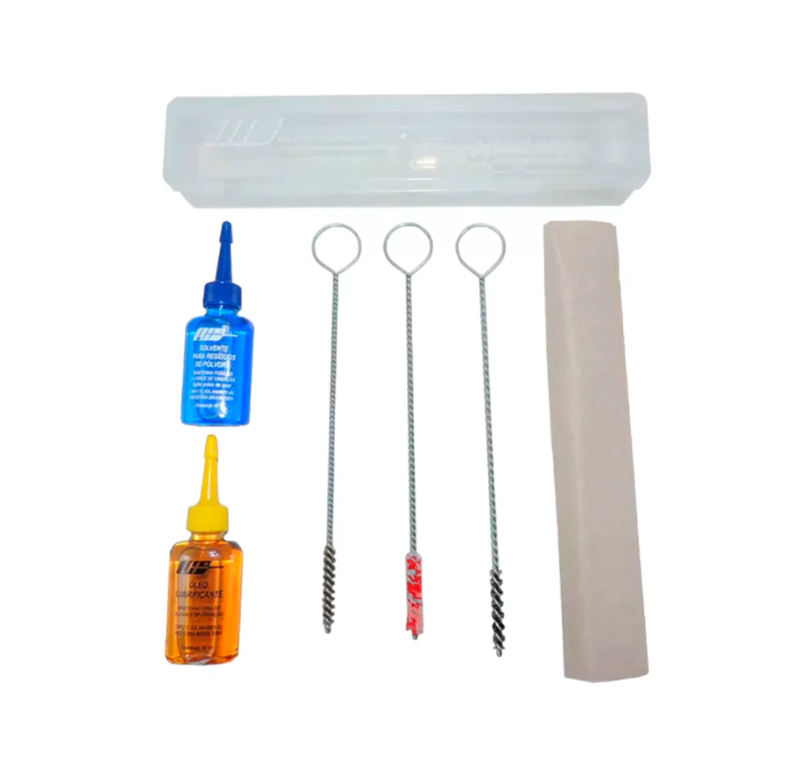 Kit exclusivo que contém vários produtos necessários para manutenção e limpeza de sua arma de fogo. Fixados dentro de uma bandeja convenientemente organizados para armazenagem.