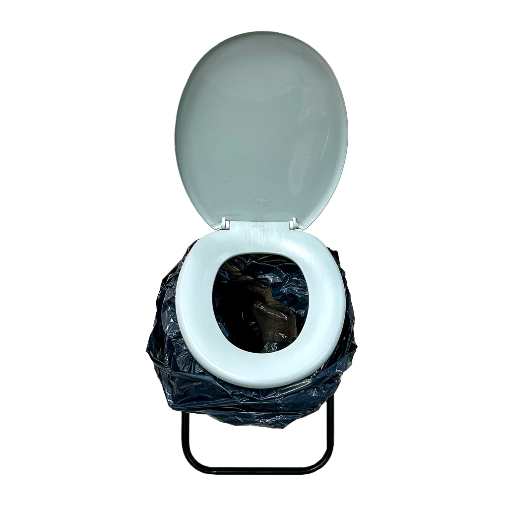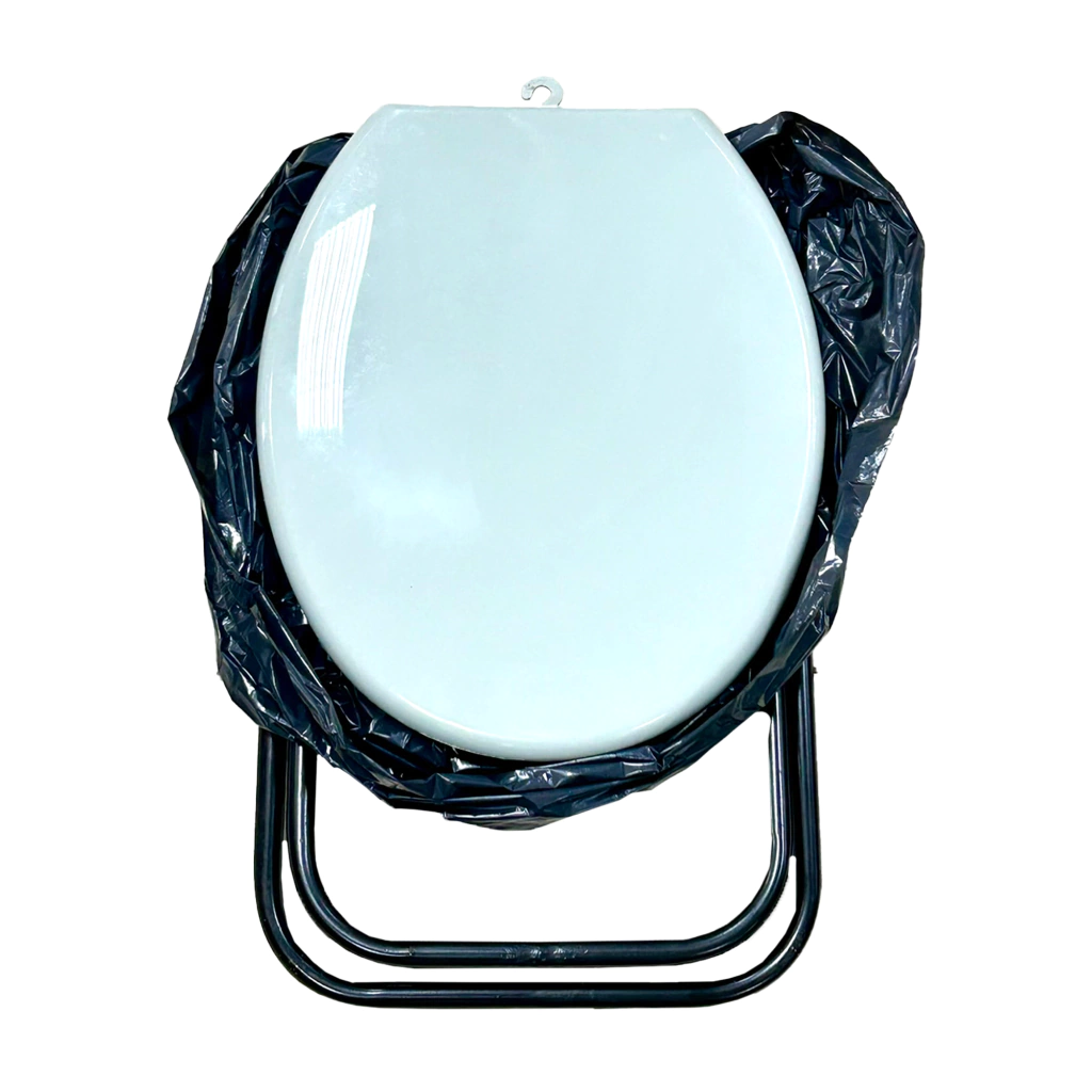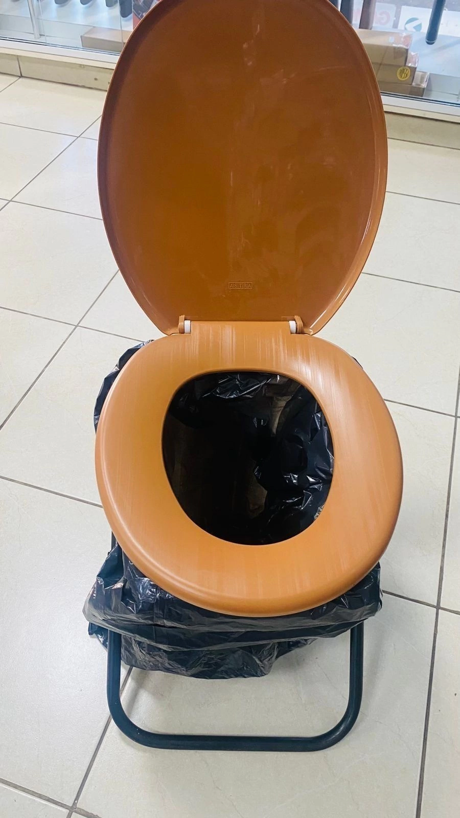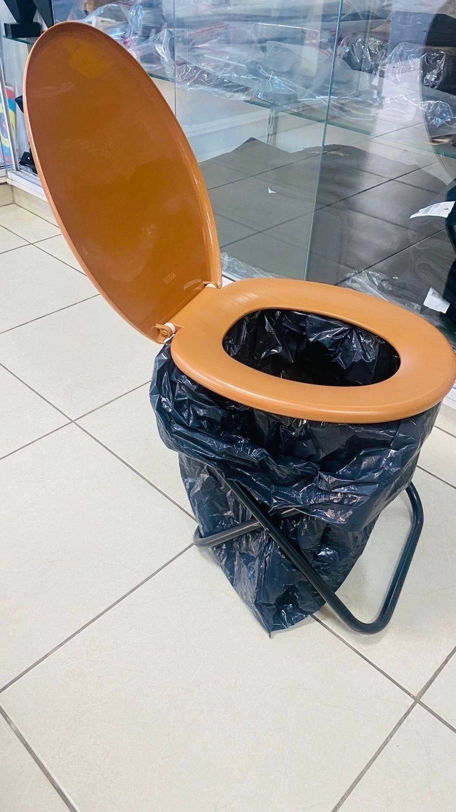 Banqueta reforçada capacidade 140 kilos, com tampa de vaso sanitário, espelho, compartimentos para papel higiênico, creme dental, escovas e capa de lona com zíper.