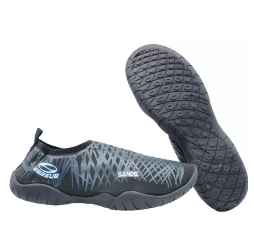 A Sands da SeaSub, é uma Sapatilha Multiesportiva aquática, sendo indicada para: surf, stand up paddle, jet ski, kitesurf, embarcações, caiaques, mergulho recreativo e até mesmo caminhada na praia. O cabedal com material sintético (Spandex) se mantém justo ao pé, assim não atrapalha os movimentos. Além de ter secagem rápida e boa ventilação.